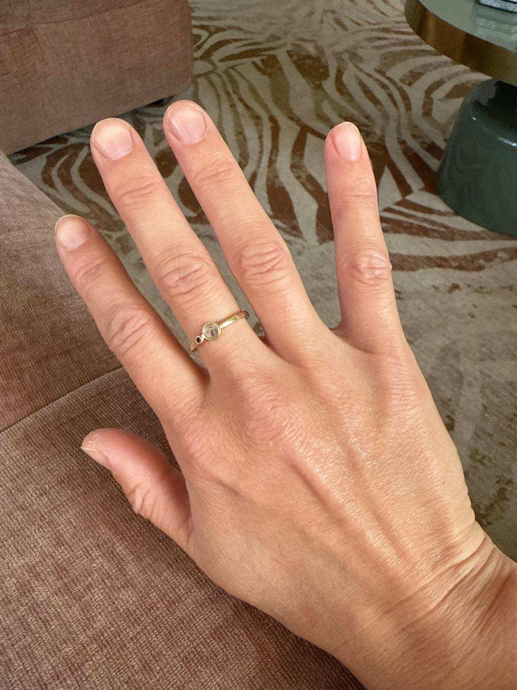 Heel blij met mijn ring, de navelstreng is erg mooi in de moedermelk verwerkt! Ik had zelf verwacht dat de geboortesteen iets groter zou zijn, maar inmiddels ben ik er aan gewend en alsnog heel tevreden.